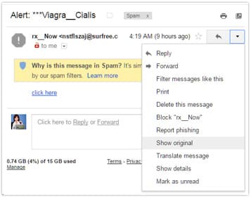 In Gmail, select “Show Original” from the Actions menu.