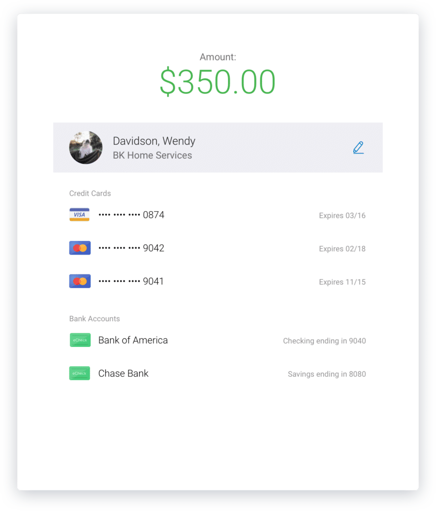 Collect payments faster by setting up payment information once and using a recurring payment system to make it easy for customers to pay on time.