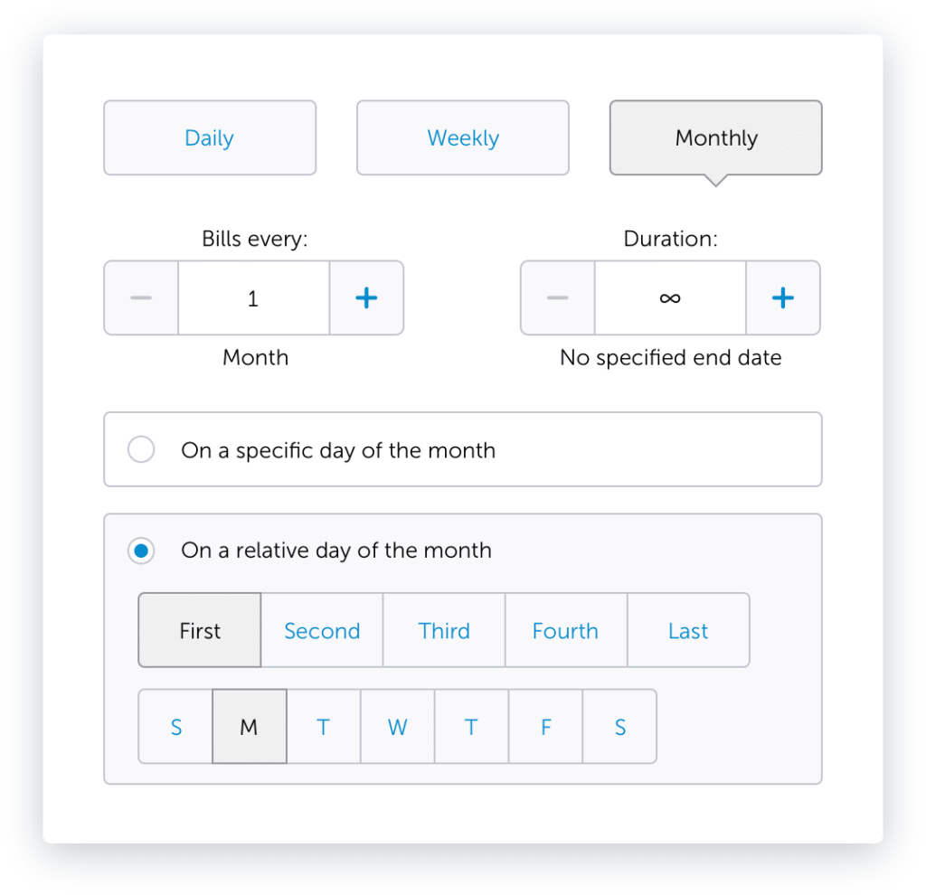 A recurring billing system saves time not only for your business but for customers as well. Offer the best experience possible by setting up an automated billing schedule that works for them.